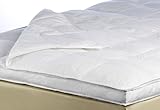 Inches of loft add comfort to your mattress with a top that velcros in place and remove for washing ease. 100% cotton shell with a 2 inch gussett is generously stuffed with a blend of small feather and down. Baffle box construction holds the filling in place. Top layer is 100% cotton. Twin XL - perfect for dorm rooms! Twin Extra-Long Featherbed 100% Cotton Shell 2 inch gussett stuffed with a blend of small feather and down Sewn to hold filling in place